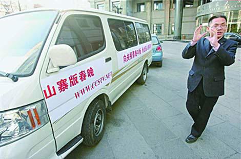 “向央視春晚叫板,給全國人民拜年”,并標了山寨春晚網(wǎng)址。11月28日,北京一小區(qū)的樓下,一輛寫有挑釁口號的面包車非常惹眼。這輛“牛車”車主四川小伙老孟說,要自辦一場草根參加的山寨版春晚,時間與央視春晚同步,通過網(wǎng)絡直播,目的就是向央視春晚叫板。