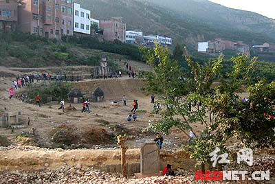 網(wǎng)友上傳的另一張圖片,乒乓球臺的旁邊就是墳