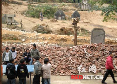 這所學校的張校長感到挺無奈,原來,由于占地40畝的新操場明年才能建成投入使用,為了不耽誤學生的體育課,因此臨時啟用了這片空地作為操場,這塊空地,是打算用來修教師宿舍的,因為按當?shù)亓曀祝瑝炛荒茉谵r(nóng)歷二十四節(jié)的“大寒”期間才可動遷,因此,這些還未遷走的墳墓最也要等到明年1月下旬才能遷走。