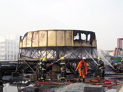 起火的黃河時(shí)裝城位于虎門1平方公里服裝商圈內(nèi),是虎門很旺的購物地點(diǎn),1到4樓為中小型服裝商鋪,5樓為超市及飲食店。起火點(diǎn)是9樓頂上的一個(gè)冷卻塔。記者在現(xiàn)場(chǎng)看到,冷卻塔中央有小火,只是起初濃煙很大,彌漫空中。據(jù)悉,該冷卻塔已經(jīng)廢棄,排除自燃的可能性。20多分鐘后,火被撲滅,沒有人員傷亡。記者昨日下午5時(shí)40分離開現(xiàn)場(chǎng)的時(shí)候,整個(gè)時(shí)裝城仍處于封閉狀態(tài)。