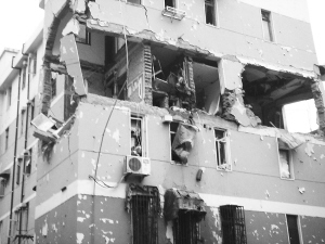 事發(fā)后,樓內(nèi)有居民自行逃出,警方和消防搶險(xiǎn)人員趕到后,從中救出了數(shù)名傷員。爆燃產(chǎn)生的巨大沖擊波,還致使樓房旁一根高約15米的電線(xiàn)桿發(fā)生傾斜。供電部門(mén)為安全起見(jiàn),切斷了整個(gè)小區(qū)的供電。記者在現(xiàn)場(chǎng)看到,一輛電力搶修車(chē)已送來(lái)一根新電線(xiàn)桿,準(zhǔn)備待警方勘查完后施工。