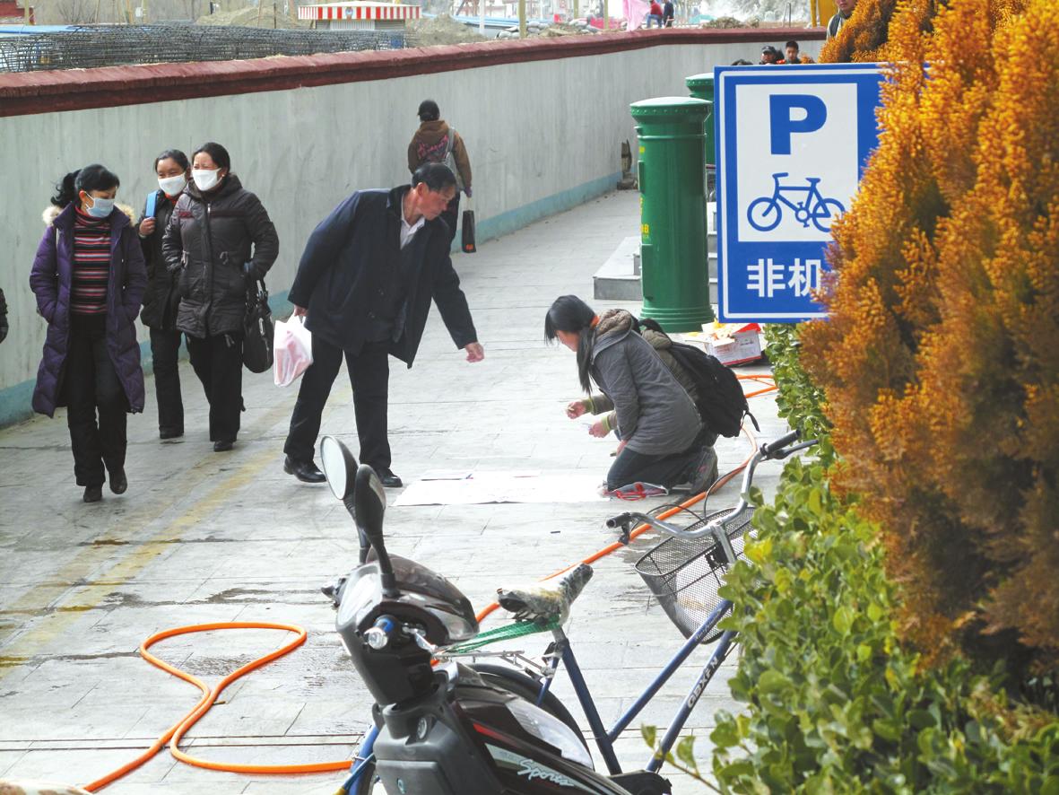 然而,當(dāng)其中一個(gè)女孩看到記者正在遠(yuǎn)處掏出相機(jī)拍照時(shí),顧不得接過(guò)市民遞過(guò)來(lái)的錢,連忙用手遮著臉,拉著另一個(gè)女孩迅速站起來(lái)收拾東西,然后飛快地離開了現(xiàn)場(chǎng)。