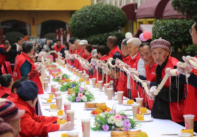 重慶:養(yǎng)老院擺長桌面條宴迎重陽