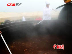 吉尼斯最大包銅工藝鍋 烹飪?nèi)f人魚(yú)宴