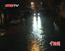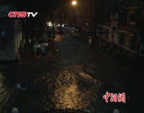 當(dāng)晚19時(shí)33分,事發(fā)后現(xiàn)場(chǎng)大閘橋上擠滿了焦急的群眾,此時(shí)橋墩下被困男子一手抓著救生圈,另一只手緊緊抱著橋墩,防止被水沖走。而距男子身邊下游不足十米,即是提起的大閘門,稍有松懈水流就會(huì)將其吞噬,情況萬(wàn)分危急。