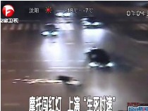 實(shí)拍:摩托闖紅燈 上演“生死時(shí)速”