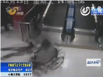 實(shí)拍:失控輪椅從自動(dòng)扶梯上沖下 女子被撞飛