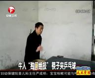 牛人“獨門絕技” 筷子夾乒乓球