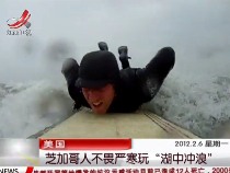 沖浪愛好者不畏嚴(yán)寒在冰湖中玩沖浪