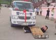 廣西雜技達(dá)人練就玻璃洗臉硬