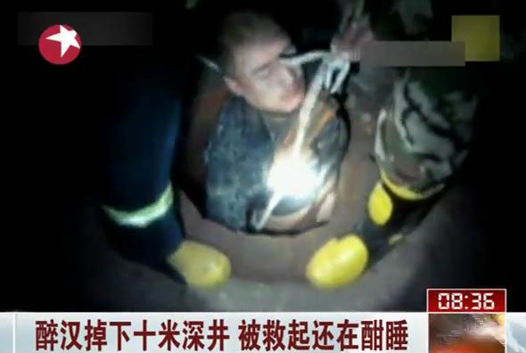 醉漢掉下十米深井 被救起還在酣睡