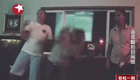 當(dāng)天下午2點(diǎn)多,來賓市消防官兵接警后,迅速前往處置。在現(xiàn)場,一輛五菱面包車被卡在超市斜坡的門口處,其右邊前后兩個輪胎已經(jīng)爆裂,擋風(fēng)玻璃也被撞碎。一名被撞行人遭困在面包車和防護(hù)欄之間動彈不得。