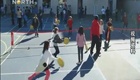 美女主持人直播球賽 被足球砸中腦袋