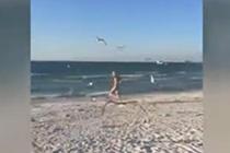 女孩喂海鷗遭群鳥追逐