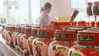 【解說】黃海濤說,“九斤”的飲食也很講究,愛吃撈面條,有時候還能喝酒。它心情好的時候,一杯一次性杯子的啤酒,一般能喝大半杯。記者看到,一位鄰居拿來一瓶小麥啤,給它倒在食盆里,“九斤”歪著頭看了看,便低頭喝了起來,每喝一口,就仰起脖子慢慢咽下去,喝完酒的“九斤”搖搖晃晃的,最后干脆臥在那里不動了。惹得周圍人哈哈大笑。