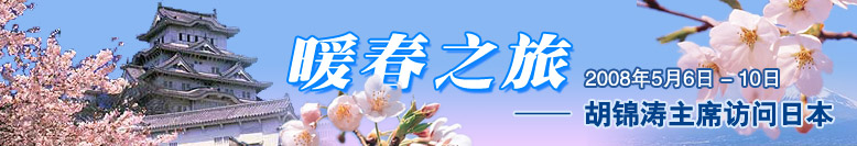 5月6日-10日,中國國家主席胡錦濤對日本進(jìn)行了為期五天的國事訪問。[詳細(xì)]