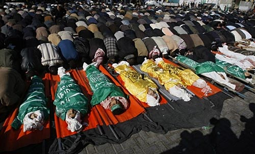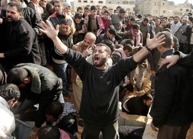 第六日 哈馬斯領(lǐng)導(dǎo)人尼扎爾•拉揚(yáng)的住所遭到以軍轟炸,他本人及多名家人喪生。這是以軍空襲加沙以來(lái)首次炸死哈馬斯高級(jí)領(lǐng)導(dǎo)人。總死亡人數(shù)則上升至410人,2000多人受傷。當(dāng)天,以色列國(guó)防部公布了“鑄鉛行動(dòng)”的最新戰(zhàn)報(bào),稱已摧毀了哈馬斯位于加沙的450處據(jù)點(diǎn),有25處是在新年第一天的襲擊中擊毀的。另外,聯(lián)合國(guó)安理會(huì)召開(kāi)會(huì)議,就呼吁加沙地帶實(shí)現(xiàn)停火的決議草案進(jìn)行討論,但因英美反對(duì)而未獲通過(guò)。【詳細(xì)】