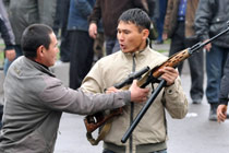吉爾吉斯斯坦大規(guī)模騷亂 示威者手持槍支