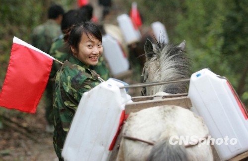 圖:消防官兵為貴州黔西南旱區(qū)百姓送水
