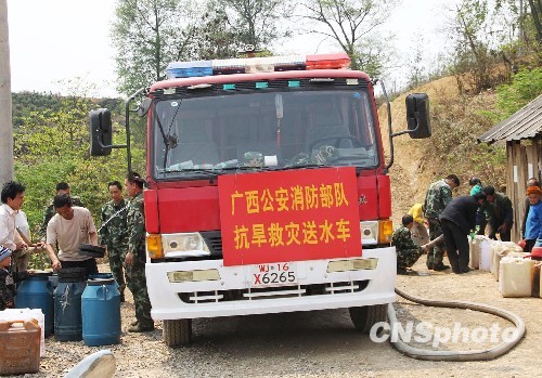 廣西消防抗旱救災(zāi)突擊隊桂西北地區(qū)送“甘霖”