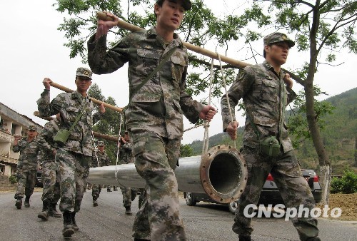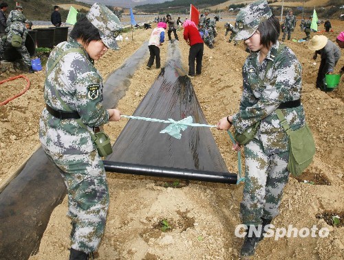 圖:抗旱突擊隊鋪設(shè)輸水管線