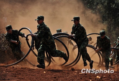圖:解放軍出動抗旱 軍隊為民眾澆灌禾苗