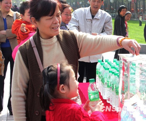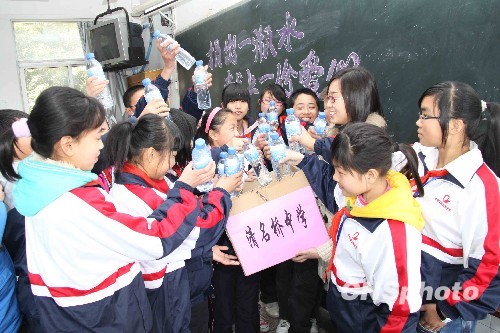 圖:江蘇無錫中學(xué)生開展向災(zāi)區(qū)捐水活動