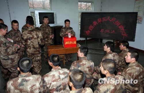 駐豫某部7000余名團員青年向西南旱區(qū)捐款