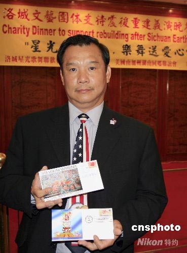 洛杉磯華人發(fā)行紀(jì)念“5.12”遇難同胞首日封