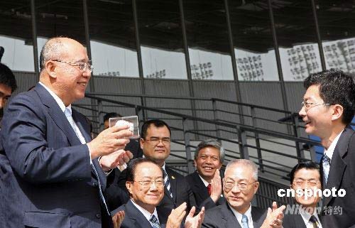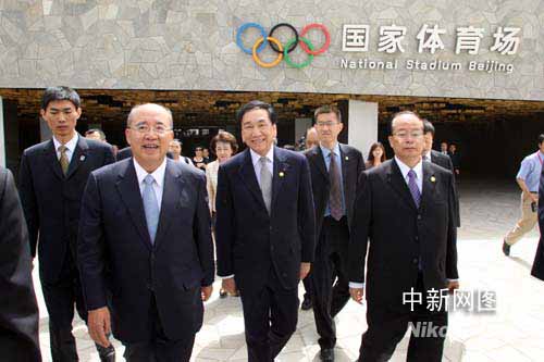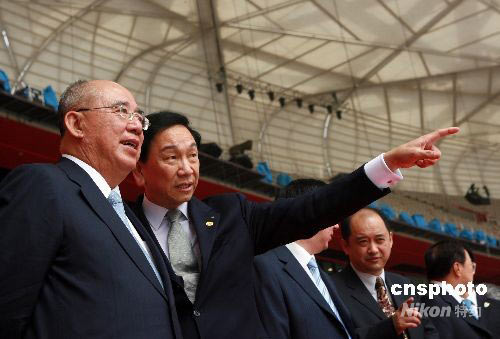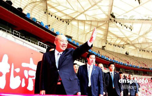 圖:中國(guó)國(guó)民黨主席吳伯雄一行參觀"鳥(niǎo)巢"(2)