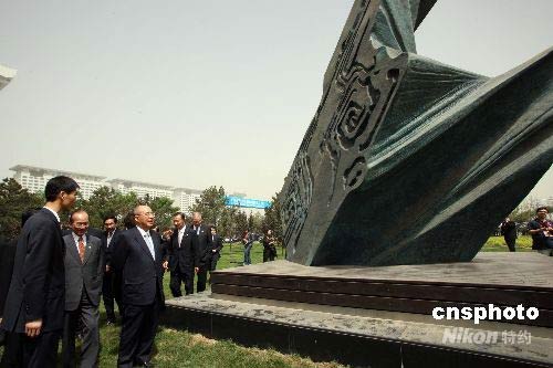 圖:吳伯雄參觀臺(tái)灣藝術(shù)家雕塑作品"水袖"