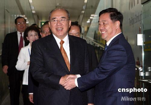 圖:中國(guó)國(guó)民黨主席吳伯雄一行抵達(dá)上海