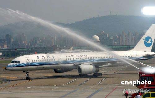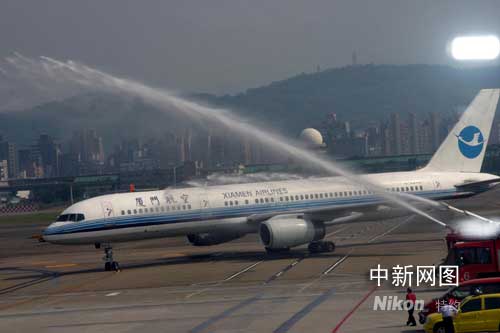 圖:廈航機(jī)組直航臺(tái)北凱旋歸來(lái)