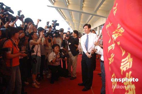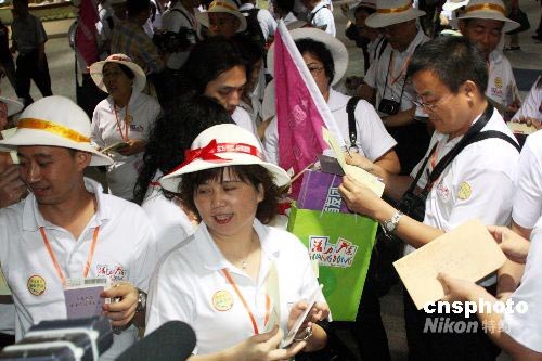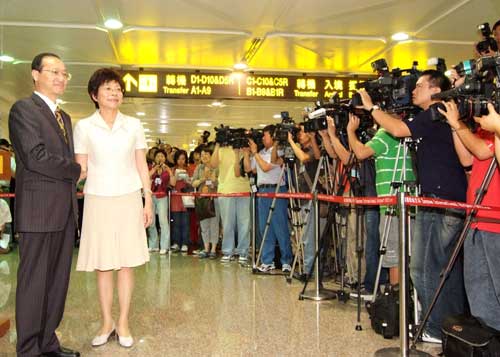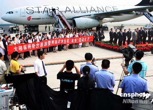 圖:臺(tái)北松山機(jī)場(chǎng)隆重歡迎大陸游客