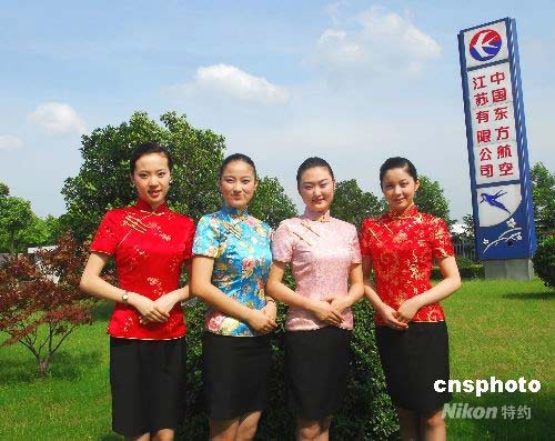 圖:兩岸周末包機(jī)空姐著20萬(wàn)云錦裝亮相