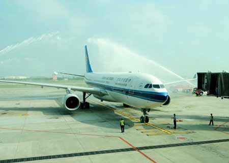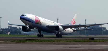 組圖:臺(tái)灣中華航空公司兩岸周末包機(jī)首航上海