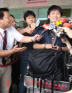 組圖:臺(tái)北桃園機(jī)場(chǎng)迎來(lái)大陸首團(tuán)游客