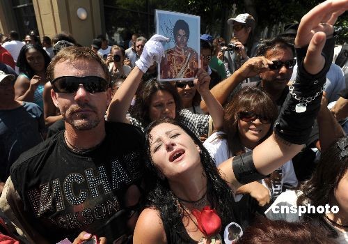 圖:歌迷在追悼會場外共同悼念邁克爾·杰克遜