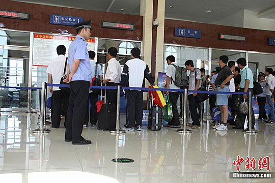 圖:伊春機場乘客在辦理登機手續(xù)