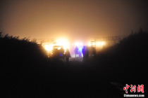 圖:救援人員在飛機失事現(xiàn)場待命