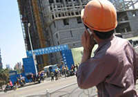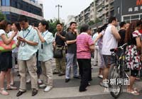 河南省會(huì)鄭州受到四川地震波及,該市豫博大廈樓內(nèi)跑出的民眾。
