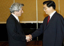 2005年,中美元首一年之中五度會(huì)晤,美政府內(nèi)閣要員悉數(shù)來華。美國(guó)總統(tǒng)布什十一月實(shí)現(xiàn)其任內(nèi)的第三次中國(guó)行時(shí),中國(guó)以主動(dòng)姿態(tài)相迎,力將兩國(guó)關(guān)系推向更平穩(wěn)的發(fā)展軌道,“中國(guó)威脅”的擔(dān)心被“合為貴”的期待所取代。....