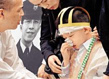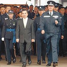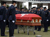 3日晚,香港紅磡世界殯儀館開始為九龍尖沙咀槍擊案殉職警員曾國恒設(shè)靈,香港特首曾蔭權(quán)及警務(wù)處長李明逵前往致祭。4日上午,香港特區(qū)立法會(huì)主席范徐麗泰、香港公務(wù)員事務(wù)局局長俞宗怡、保安局局長李少光、警務(wù)處處長李明逵等多位官員,以及來自各界的代表人士,出席了喪禮儀式。<全文>