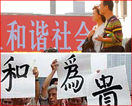 “和諧社會”是中共中央提出的“和”字的一個面向,包括“世界的和平”,“社會的和諧”和“兩岸的和解”。
