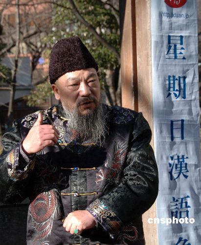 1月27日,東京星期日漢語角舉行第24次交流會,邀請正在日本訪問的中國著名國畫大師安云霽教授進行演講和座談。安云霽不僅介紹了中國的文化藝術,還就中日文化交流、北京奧運會等話題進行了深入淺出的演講。安云霽的滿口京腔以及充滿中華民族色彩的服裝,吸引了參加漢語角的日本朋友,多次贏得熱烈的鐘掌聲。中新社發(fā) 段躍中 攝
