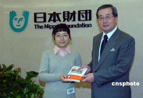 應(yīng)主辦方日本僑報(bào)社日中交流研究所的邀請(qǐng),第三屆中國人日語作文比賽最優(yōu)秀獎(jiǎng)得主——暨南大學(xué)日語系學(xué)生陳歆馨3月24日開始訪問日本。25日下午,陳歆馨在日本僑報(bào)社社長張景子的陪同下,拜訪了作文比賽特別贊助者日本財(cái)團(tuán)。日本財(cái)團(tuán)理事長尾形武壽鼓勵(lì)陳歆馨再接再厲,為中日友好作貢獻(xiàn)。據(jù)介紹,陳歆馨是在1400多名名參賽者中脫穎而出榮獲最優(yōu)秀獎(jiǎng)的。中新社發(fā) 段躍中 攝