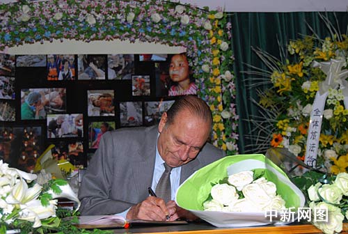 巴黎時間二十一日上午,法國前總統(tǒng)希拉克專程來到中國駐法國大使館,向中國汶川地震的遇難者表示深切哀悼。希拉克在吊唁簿上寫道:“對中國遇難者及他們的家屬表示深切的哀悼和慰問,對偉大的中國人民在此次抗震救災(zāi)中的表現(xiàn)表示欽佩! 作者:吳衛(wèi)中