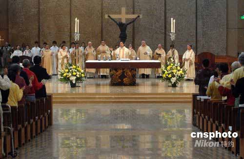 洛杉磯“天使之后”大教堂五月二十四日(周六)舉行大彌撒,為中國四川大地震遇難者祈禱。當(dāng)?shù)丶s五百名天主教信眾參加了彌撒!疤焓怪蟆贝蠼烫檬翘熘鹘搪迳即壙偨虆^(qū)的主教堂,洛杉磯總教區(qū)是美國最大的天主教區(qū)。中新社發(fā) 張煒 攝