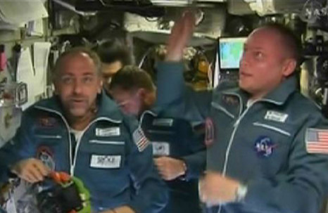 經(jīng)過兩天飛行,搭載美俄兩名宇航員和世界第六位太空游客的俄羅斯“聯(lián)盟TMA-13”載人飛船14日與國(guó)際空間站成功對(duì)接。 美國(guó)國(guó)家航空和航天局發(fā)布的這張照片顯示,10月14日,世界第六位太空游客、美國(guó)電腦游戲開發(fā)商理查德·加里奧特(左)和美國(guó)宇航員邁克·芬克到達(dá)國(guó)際太空站。