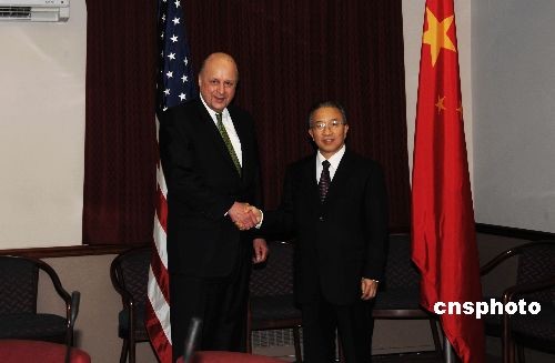 第六次中美戰(zhàn)略對(duì)話當(dāng)?shù)貢r(shí)間12月15日在華盛頓舉行,中國(guó)國(guó)務(wù)委員戴秉國(guó)與美國(guó)常務(wù)副國(guó)務(wù)卿內(nèi)格羅蓬特共同主持會(huì)談。圖為戰(zhàn)略對(duì)話開始前,戴秉國(guó)與內(nèi)格羅蓬特面對(duì)媒體握手。中新社發(fā) 邱江波 攝